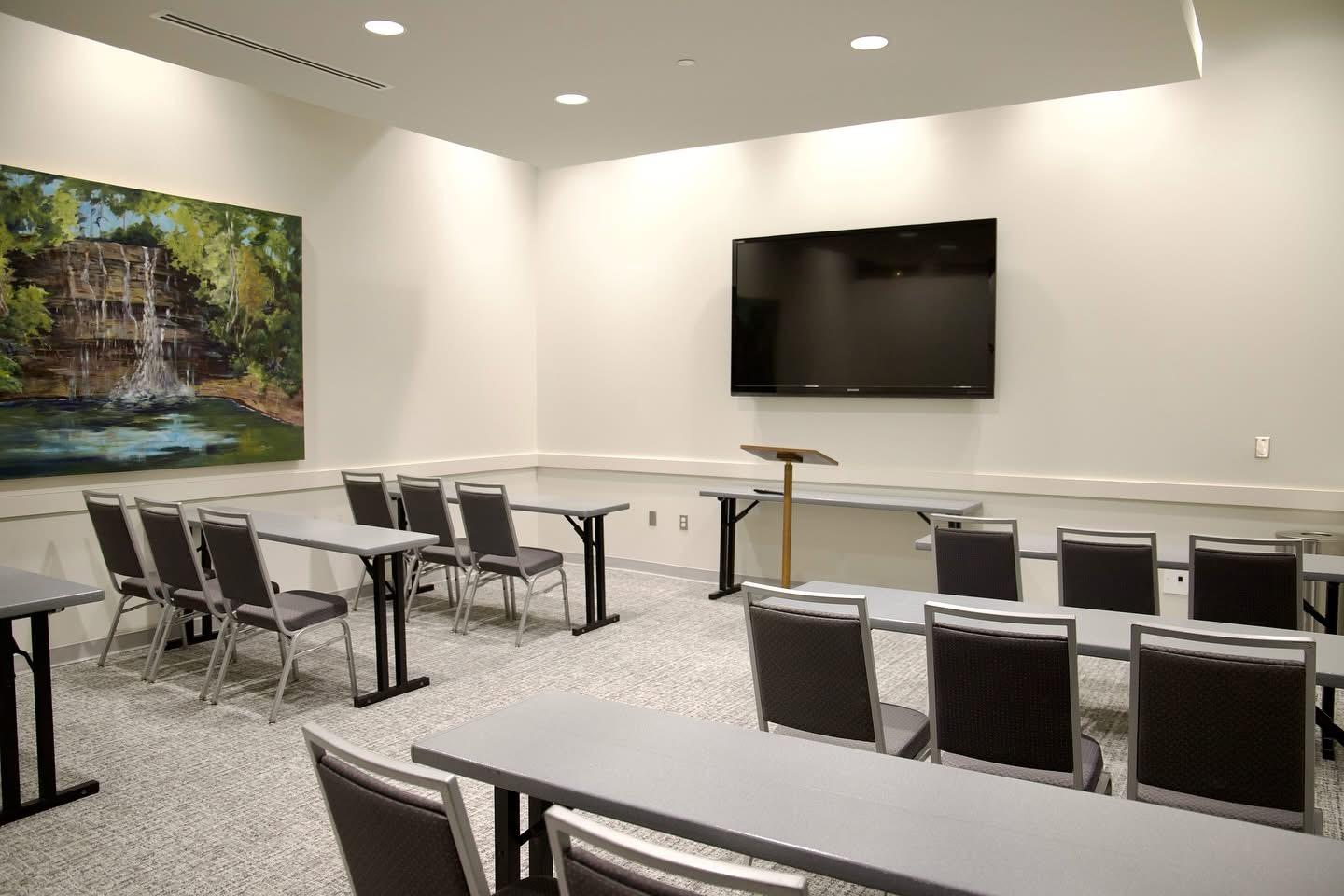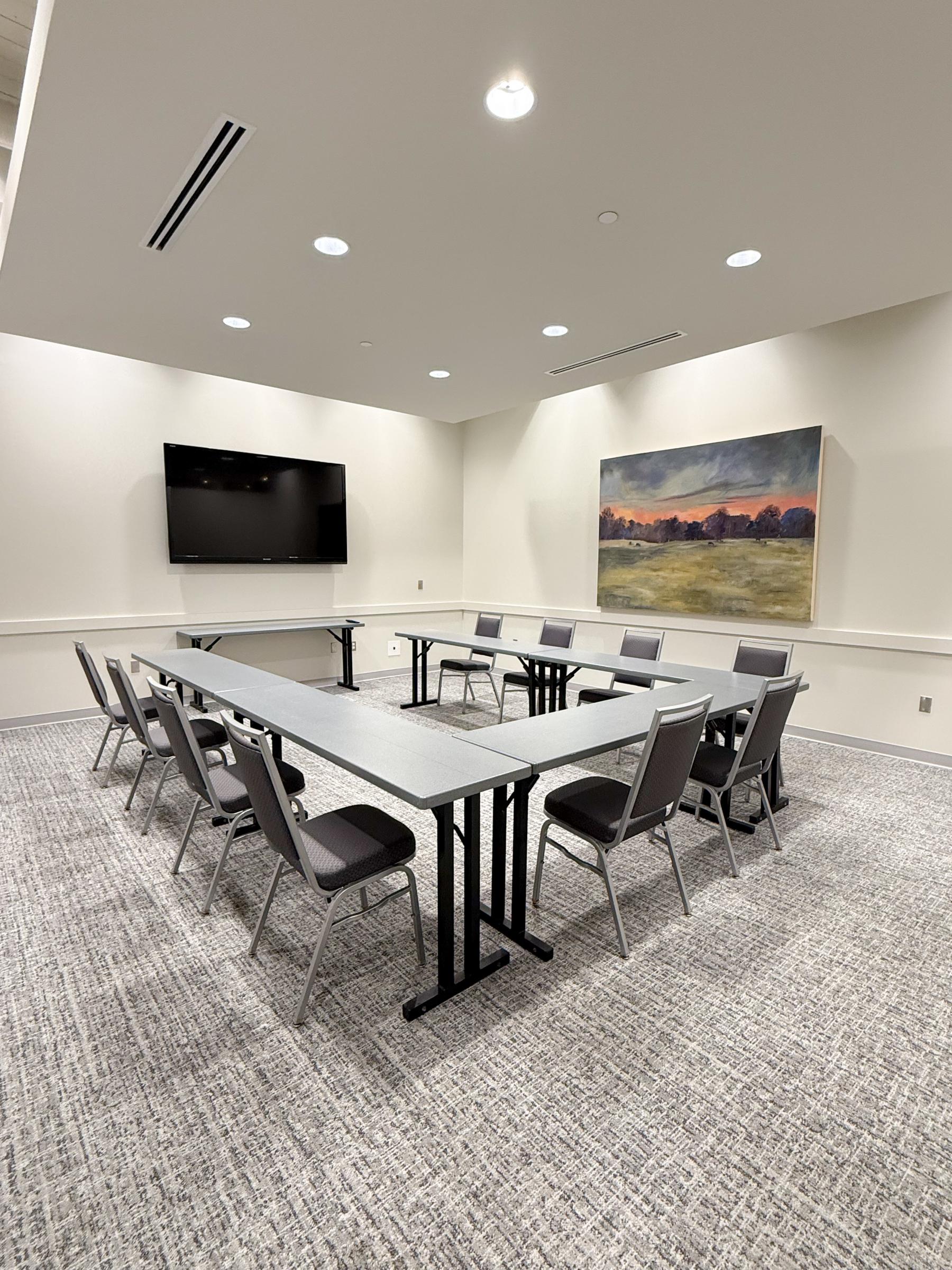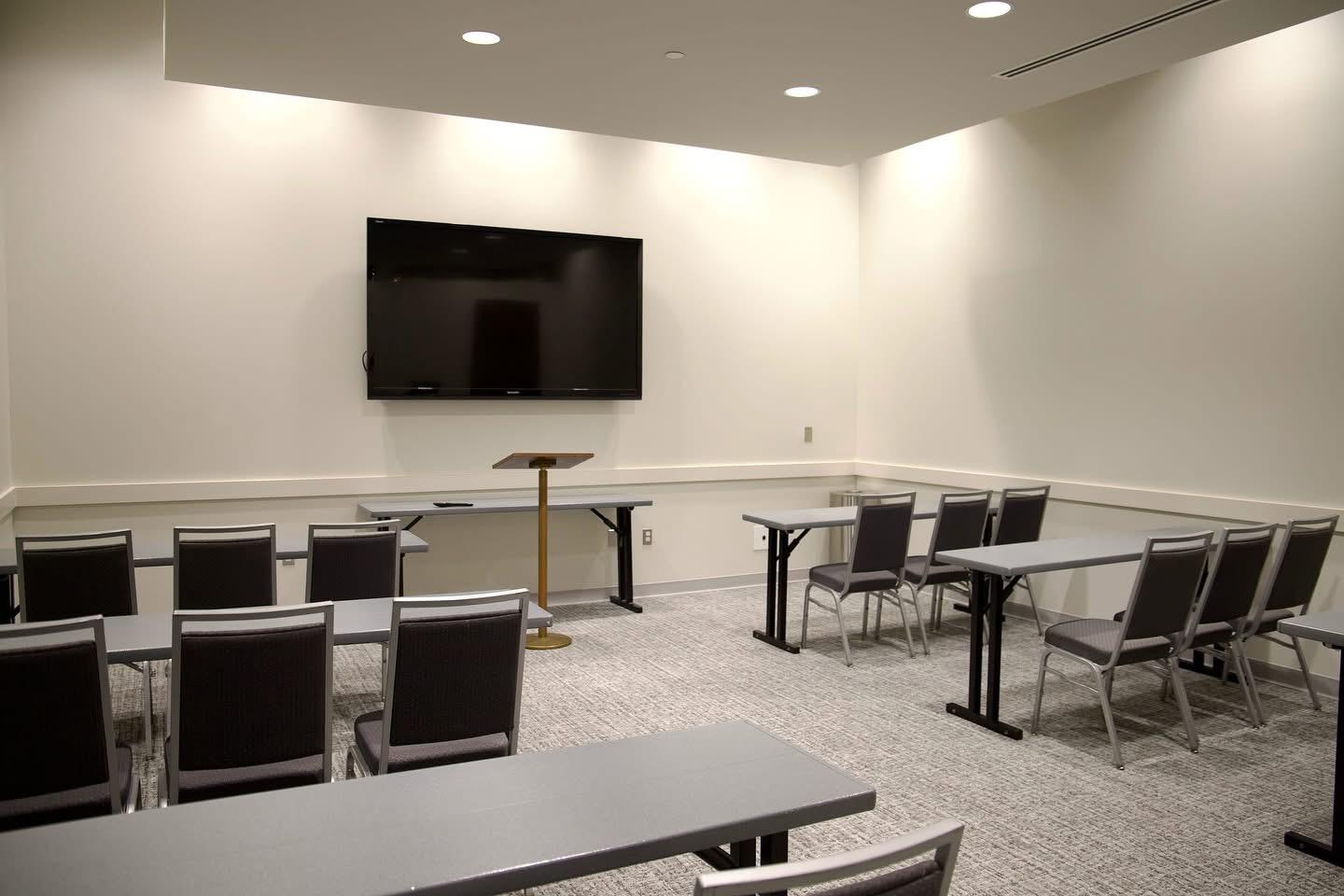 Our two small conference rooms are approximately 300 square feet each, and provide seating for 18 people with classroom seating and 30 with theater seating.